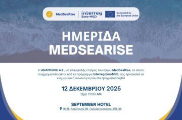 Η ΑΝΑΤΟΛΙΚΗ Α.Ε., ως επικεφαλής εταίρος του έργου MedSeaRise, το οποίο συγχρηματοδοτείται από το πρόγραμμα Interreg EuroMED, σας προσκαλεί σε ενημερωτική συνάντηση… Read More