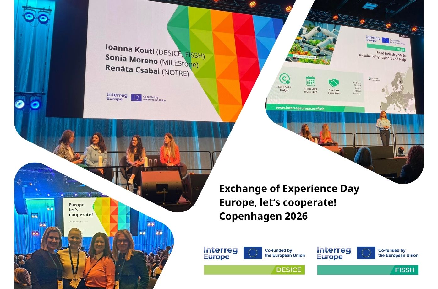 Ακολούθως, στις 16–17/04/2026, η Ιωάννα Κουτή συμμετείχε στην εκδήλωση “Europe, let’s cooperate! 2026”, επίσης στην Κοπεγχάγη, με τη συμμετοχή 600 ατόμων. Εκεί, παρουσίασε την πρόοδο και τα έως τώρα αποτελέσματα των έργων FISSH και DESICE, στο πλαίσιο των θεματικών «Smarter Europe» και «Greener Europe», συμβάλλοντας στον ευρύτερο διάλογο για την πορεία υλοποίησης αντίστοιχων ευρωπαϊκών πρωτοβουλιών. Παράλληλα, δόθηκε η ευκαιρία για ουσιαστική δια ζώσης επικοινωνία, καθώς συναντήθηκαν 6 από τους 7 εταίρους του έργου FISSH και 3 από τους 8 εταίρους του DESICE, επιβεβαιώνοντας στην πράξη τον ρόλο των εκδηλώσεων του Interreg Europe ως σημείων συνάντησης και ενίσχυσης της ευρωπαϊκής συνεργασίας.
