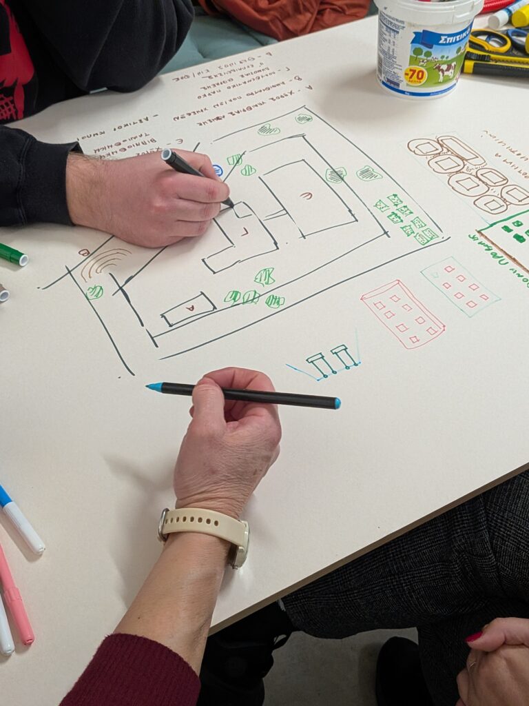 The most creative part was the participatory design exercise. Two groups were asked to create “repair neighborhoods,” visualizing ideas for how repair can be put into practice in the city. Participants proposed specific solutions and connections to existing initiatives, such as spaces, groups, and businesses already operating at the local level.