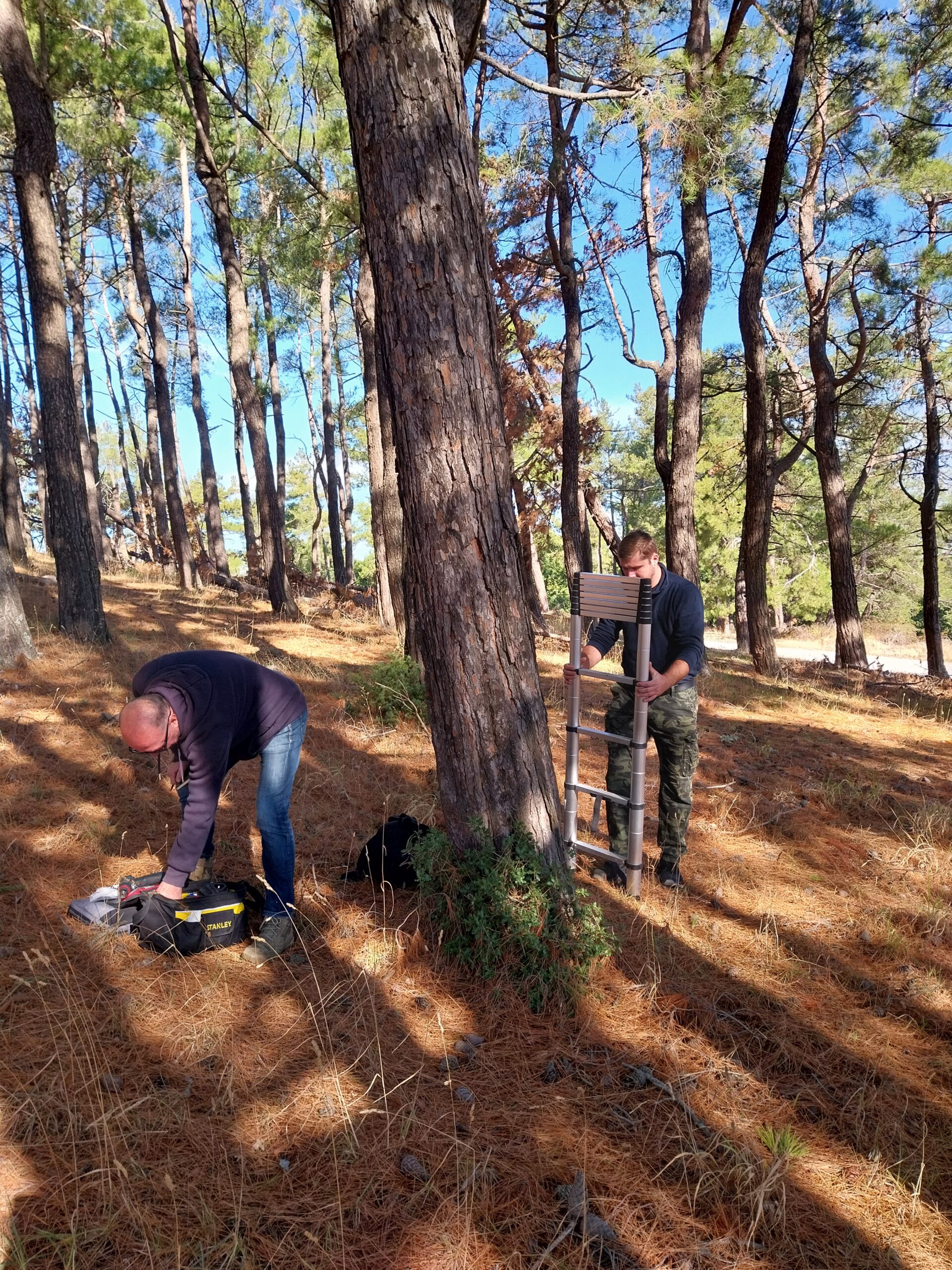• Στις 9 και 10 Οκτωβρίου, οι δύο Ιταλοί συνεργάτες, μαζί με την ομάδα έργου της ΑΝΑΤΟΛΙΚΗ Α.Ε., οδηγήθηκαν στο δάσος Λιβαδίου του Δήμου Θέρμης για την τοποθέτηση των συσκευών σε περιοχές ευάλωτες σε πυρκαγιά. Η επιλογή των περιοχών έγινε σε συνεργασία με τον κ. Κωνσταντίνο Κουγιουμτζίδη, Αντιδήμαρχο Πολιτικής Προστασίας Δήμου Θέρμης, τον κ. Τριαντάφυλλο Μπουχούνα, συνεργάτη του Αντιδημάρχου σε θέματα προστασίας δασών, και τον κ. Ηρακλή Ταβλίκο, εθελοντή του παραρτήματος Λιβαδίου της Πολιτικής Προστασίας του Δήμου.